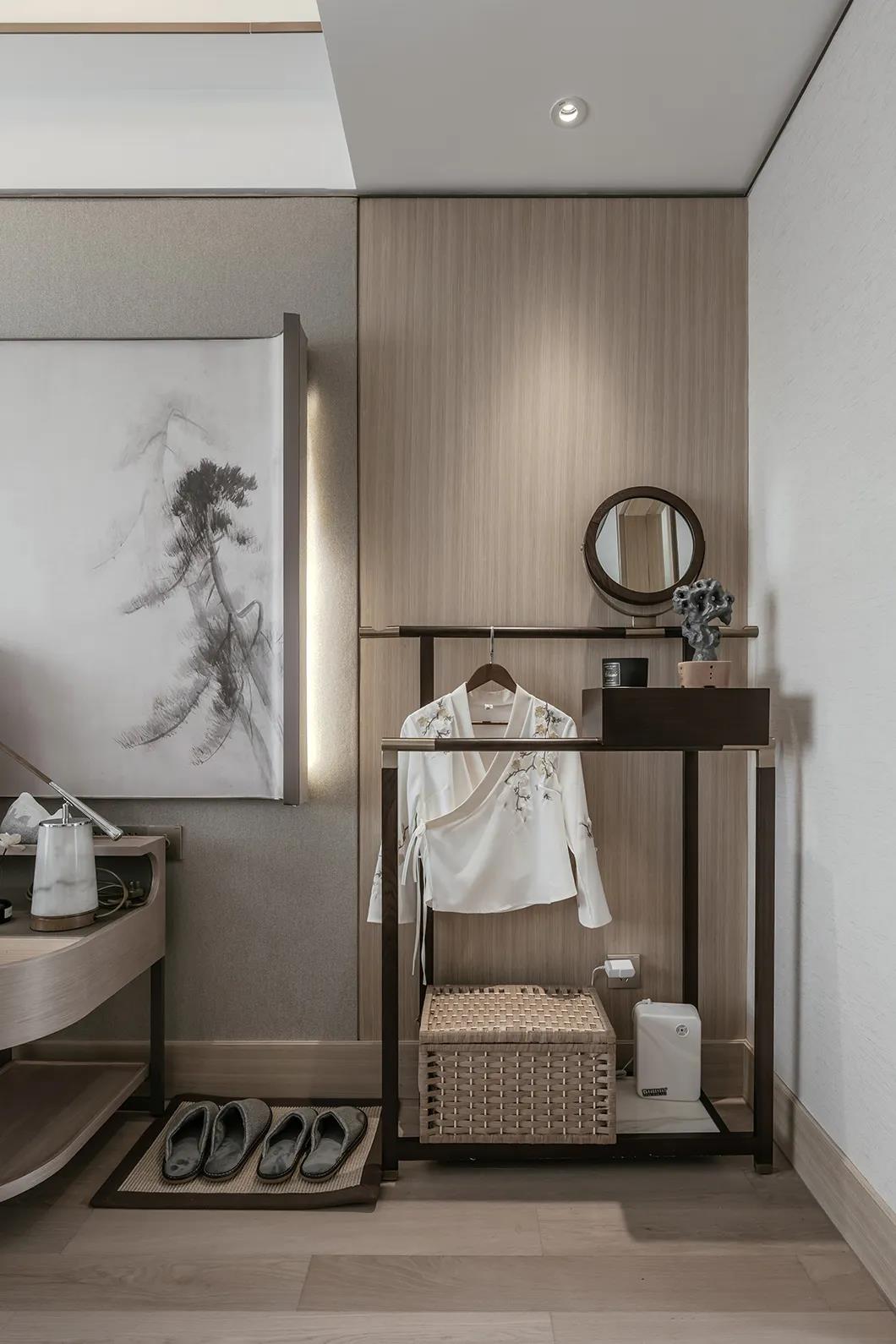 云想衣裳花想容。衣帽間增強(qiáng)了空間的流動(dòng)性。佳人在此精心梳妝打扮,細(xì)致打磨的小物件透露著不經(jīng)意的詩情畫意。